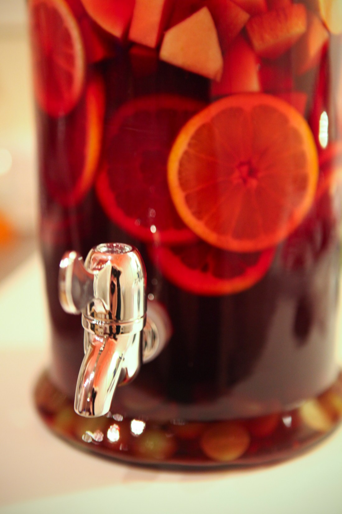My mother gave me this beautiful jar for Christmas.  I’m sure she imagined that it would hold lemonade or tea, but it is perfect for sangria.  Just pour some in a glass with ice and put a few pieces of fruit in it!  Enjoy!