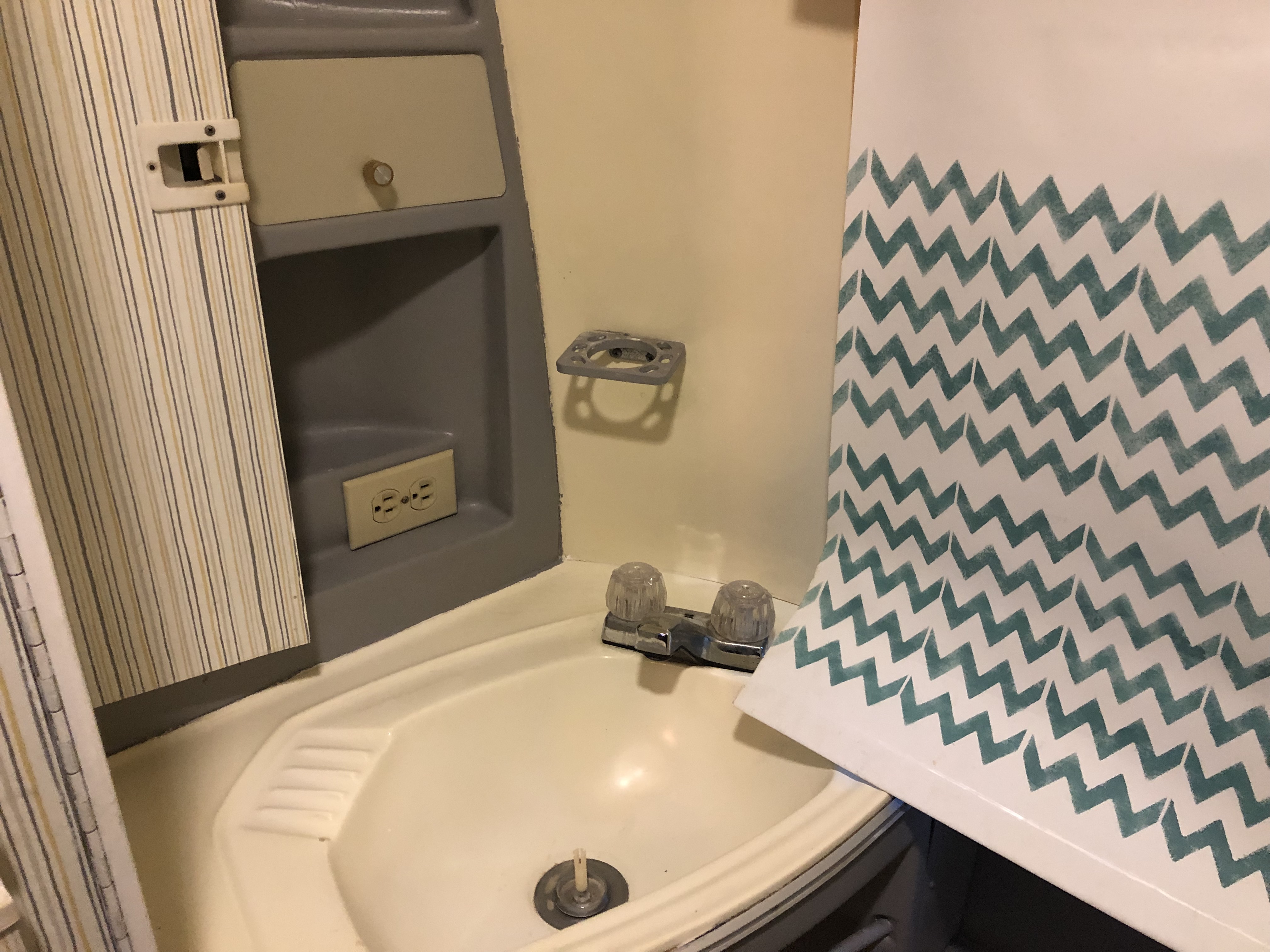 There are definitely some style changes I’d like to make but not many. I’d like to recover the couches into a lighter fabric, paint the bathroom (not crazy about the gray toilet), and replace the curtains. But overall I love the original wood and the original light fixtures and think we can find some really great fabric to lighten up the space that also goes with the original items.